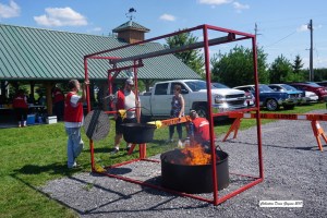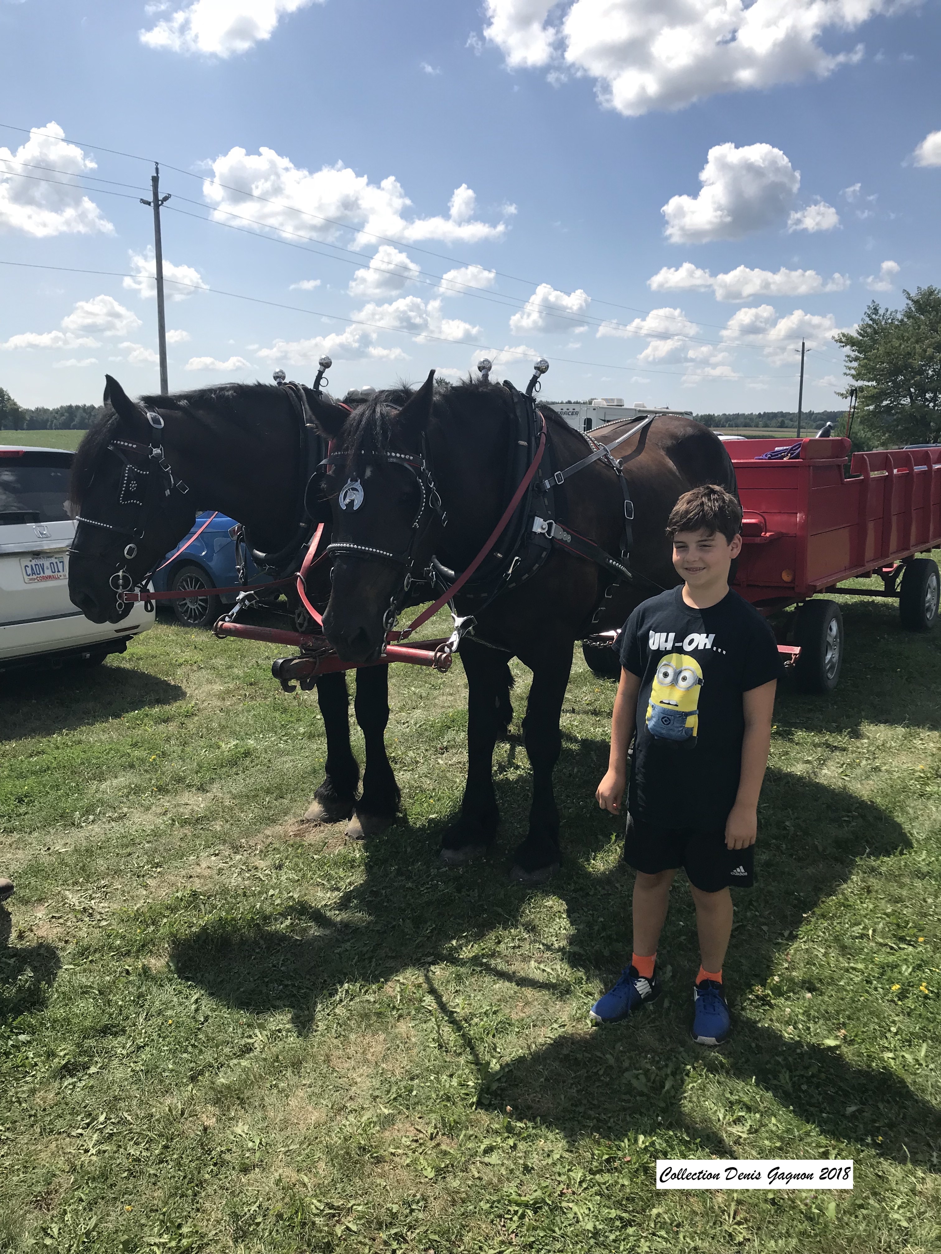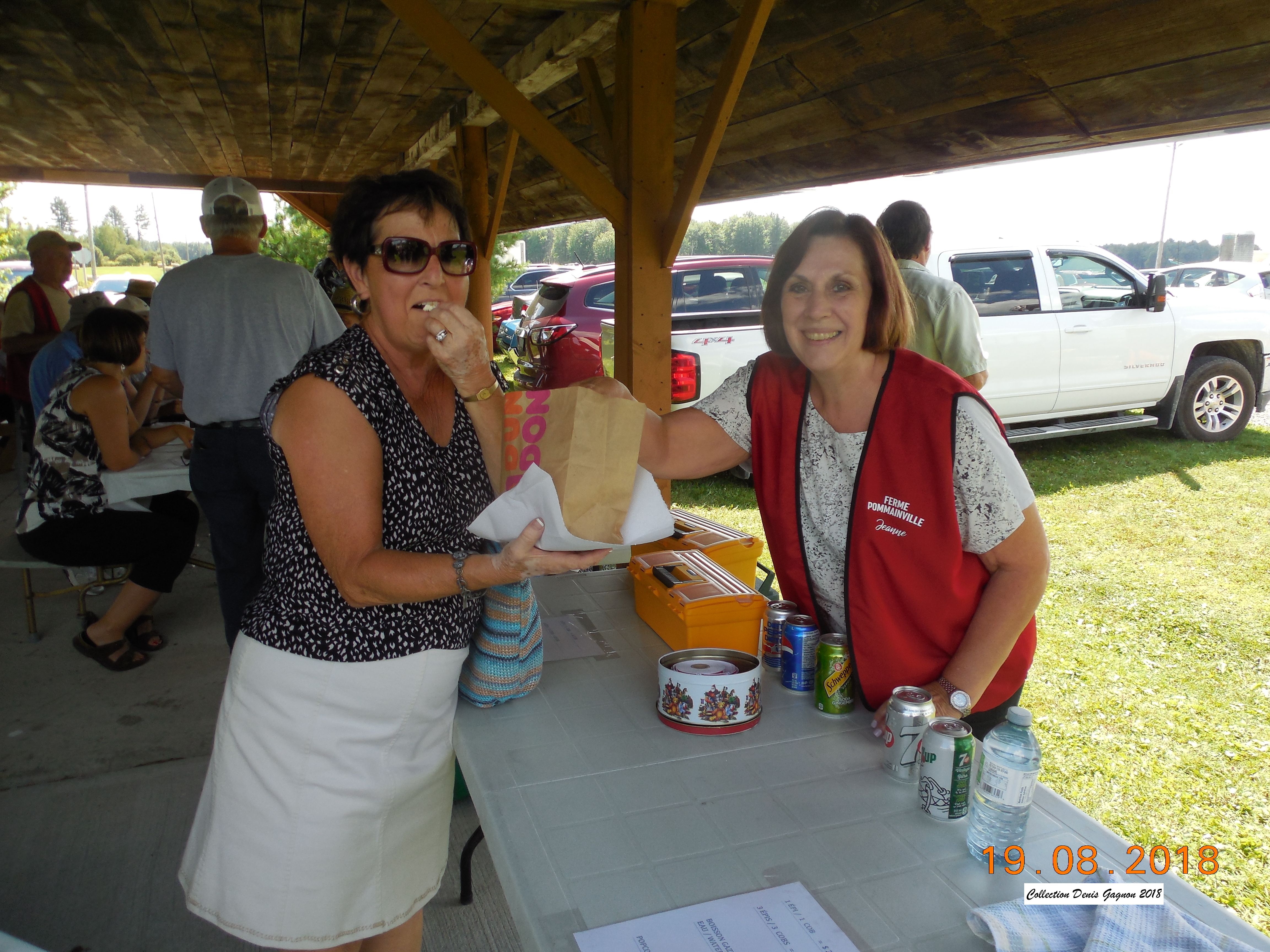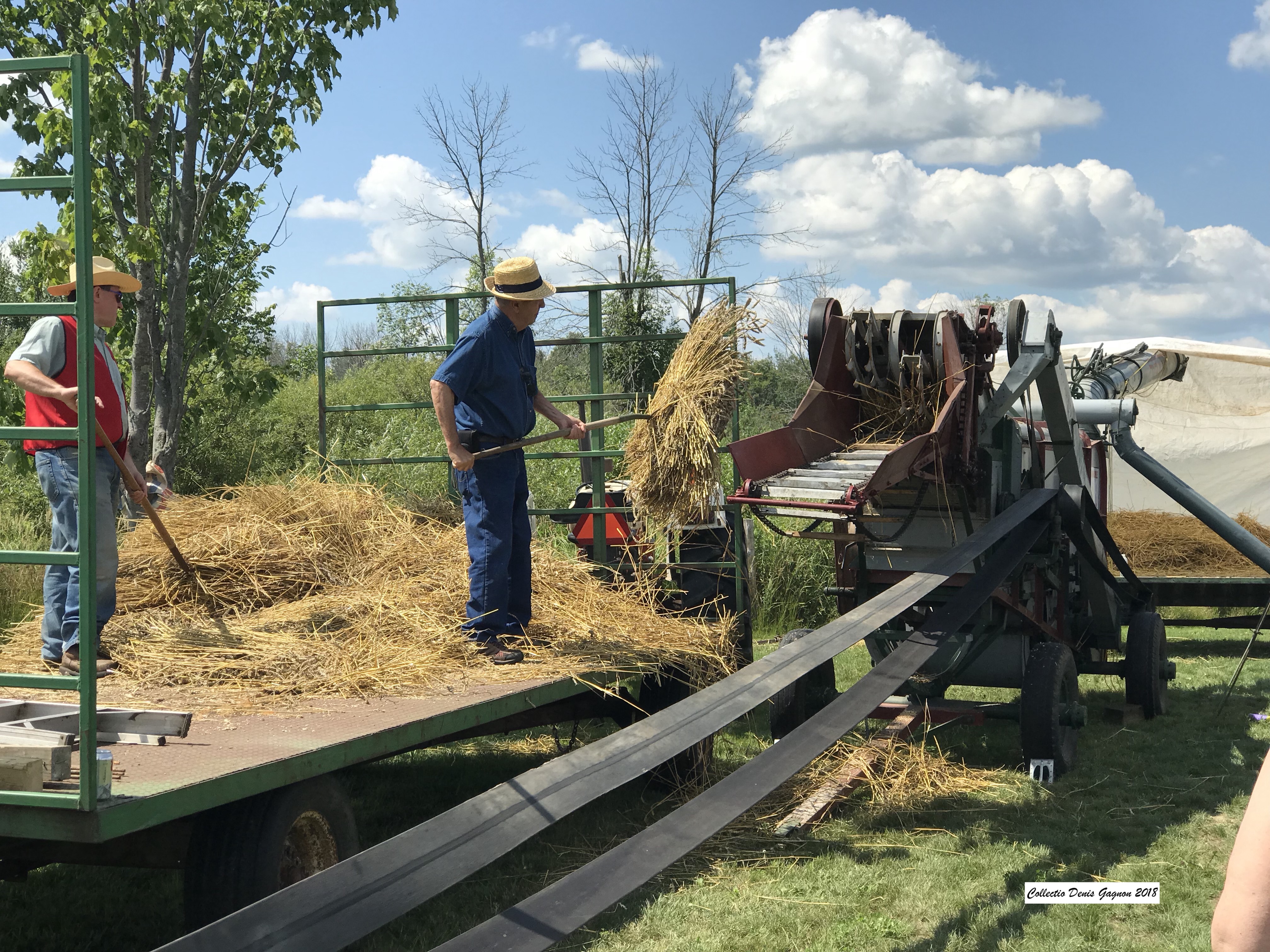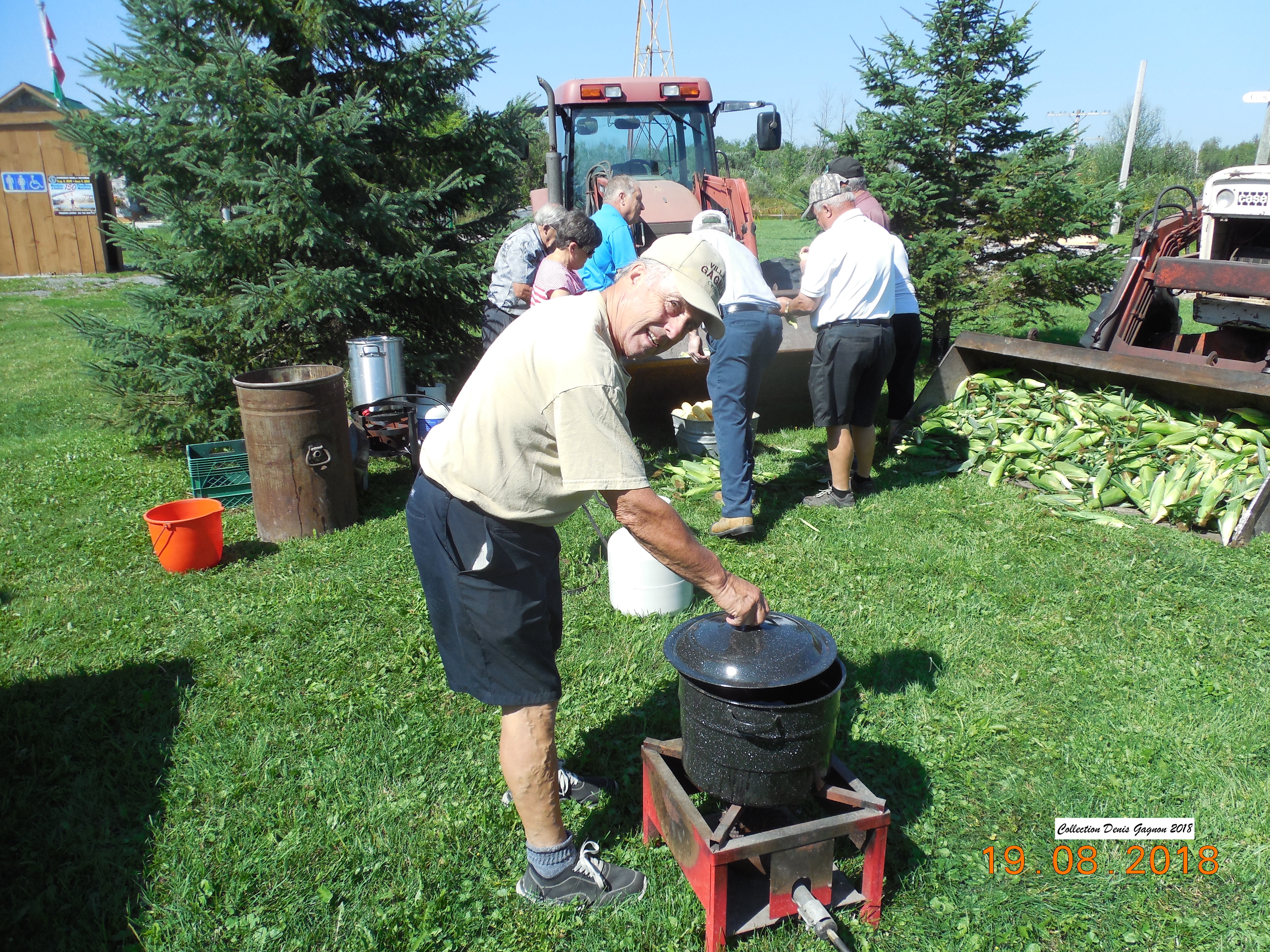 The corn roast at the Village Gagnon Parc was a great success. Around 150 persons showed up to savor the roasted corn offered by Réjean and Barbara Pommainville. Also included was some pop corn from Réjean’s home built giant pop corn machine. Denis Pommainville was the official cook while Jeanne Dazé and Antoinette Martin were at the counter. A thrashing machine from the Pommainville farm and a sawmill from Alain Dazé opened some eyes of city dwellers that came. Georges Dupuis gave rides with his two beautiful horses. Every penny gathered by Les Amis du Village Gagnon will be used to embellish this beautiful parc owned by the Nation Municipality. See other pictures under « 2018 »