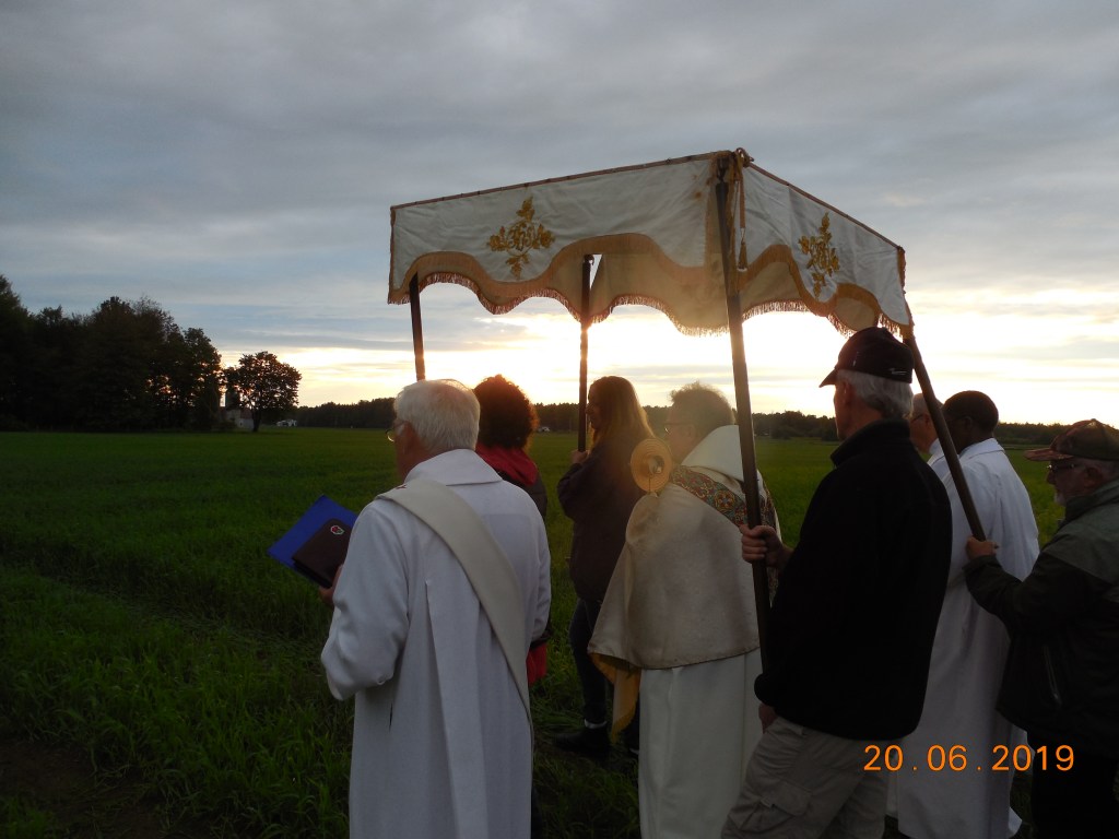 Merci à Michel Pommainville qui a bien voulu nous recueillir et avoir déniché un dais à la paroisse d’Embrun, un dais qui n’avais pas vu le soleil pour pas moins de 60 ans. Merci aux auxiliaires qui l’on appuyé. Merci à Bernard Demers qui s’est occupé de rassembler, de pratiquer pour fournir le chant en ce 20 juin 2019. Merci à la chorale qui a bien animé le chant