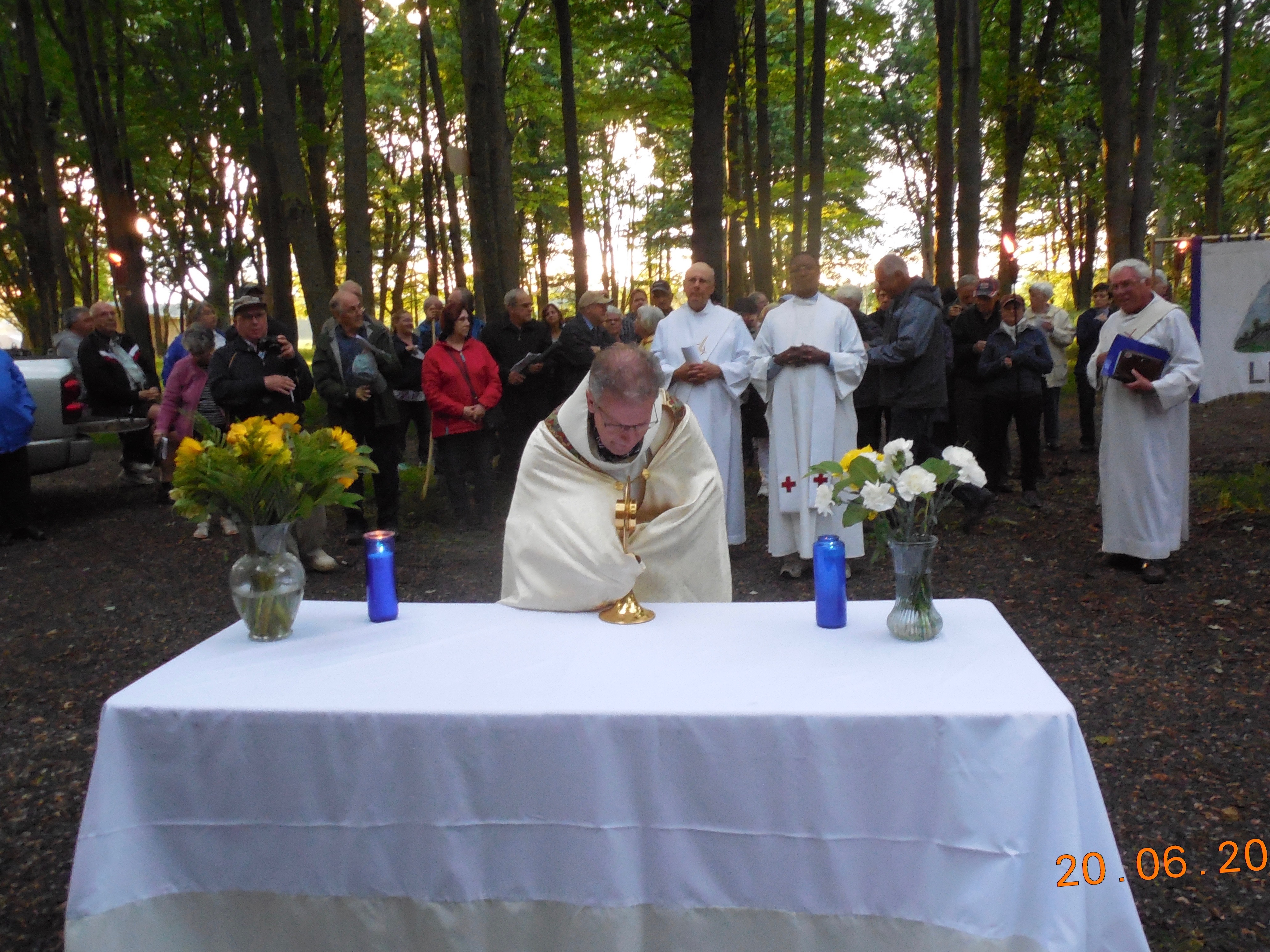 Comme prévu, la Procession de la Fête-Dieu à eu lieu le 20 juin 2019 malgré la menace de pluie. Ce n’est que vers 18h que le pluie à cessée, à temps pour le commencement de la Procession à 19h. Une messe fut dite par Michel Pommainville, Curé d’Embrun assisté de M. Edouard Ntiyankundiye, Curé le Limoges, et les diacres Marcel Givogue et André Pommainville. Les chants de circonstances furent fournis par la chorale de Limoges sous la direction de M. Bernard Demers.